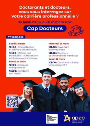 L’Apec, en collaboration avec le ministère de l’Enseignement Supérieur, de la Recherche et de l’Espace, vous invite à participer à 7 webconférences inspirantes sur la valorisation des compétences des docteurs dans le monde professionnel :